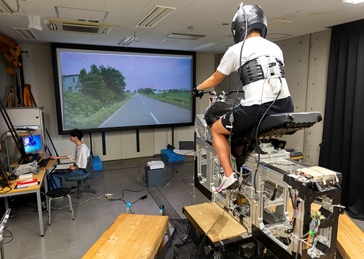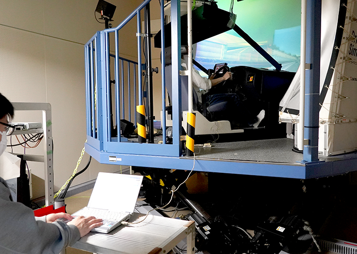 | 説明 | 3次元映像による奥行き表現と動揺装置によりドライバに高い没入感と臨場感を提供します。高速道路や一般道路において多様な走行シナリオに対応でき、自動運転、運転支援システム、車載HMIの評価など、幅広い研究・開発に活用しています。 |