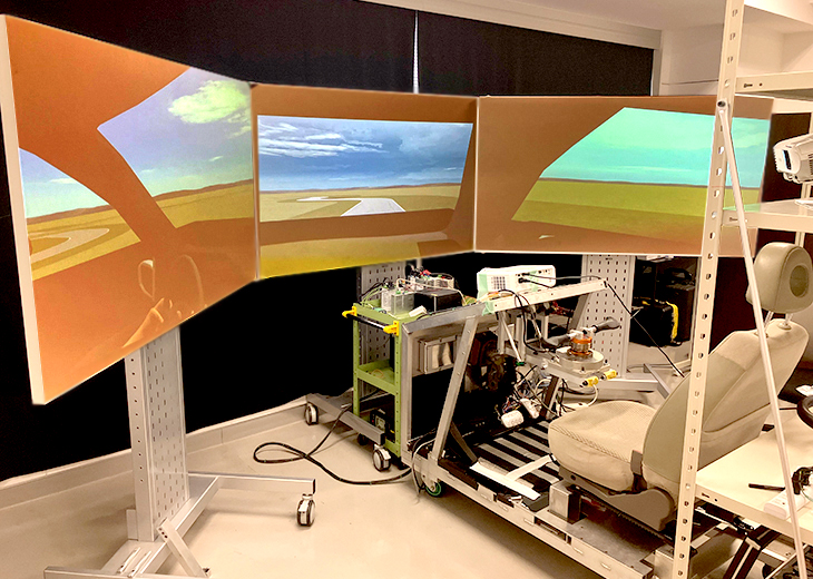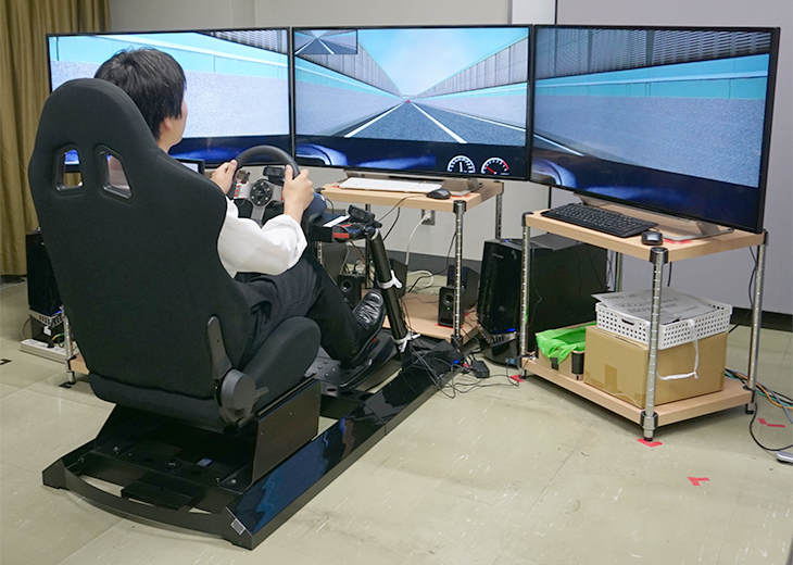 | 説明 | 42V型ディスプレイの3面。HMI、AD/ADAS等の人間工学研究に利用。 ※ 現在、新しいシミュレータへの更新作業中 |