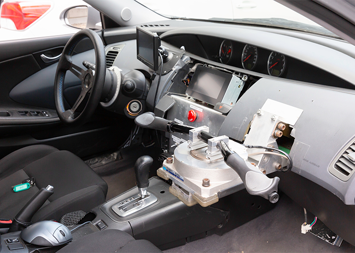| 説明 | 通常のステアリングに加えて,様々な操舵系を実装可能な実験車両。 |