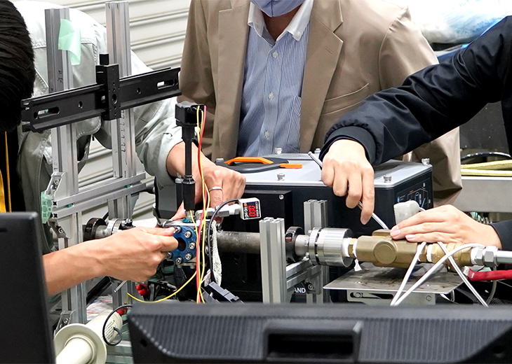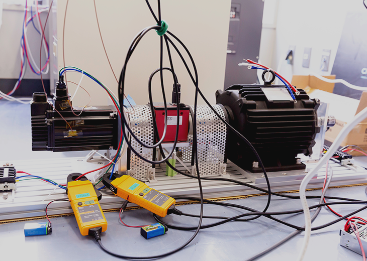 | 説明 | 供試モータ、誘導機、トルク検出器で構成され、定格3.7kWまでの力行・回生運転時のモータ諸特性の評価が可能 |