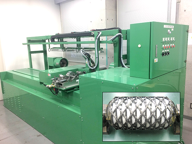 | 説明 | FRP(繊維強化プラスチック)の円筒材や,燃料電池自動車用高圧水素タンクの成形に用いられる装置です。 熱硬化性樹脂だけでなく,熱可塑性樹脂を用いた成形にも対応しています。 |