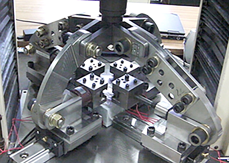 | 説明 | 一般的な一軸方向の引張試験とは異なり、直交する2軸方向で引張試験を行うことが可能です。二軸応力下での材料物性を測定することが可能で、金属材料の降伏関数の選定などに用いられています。 |