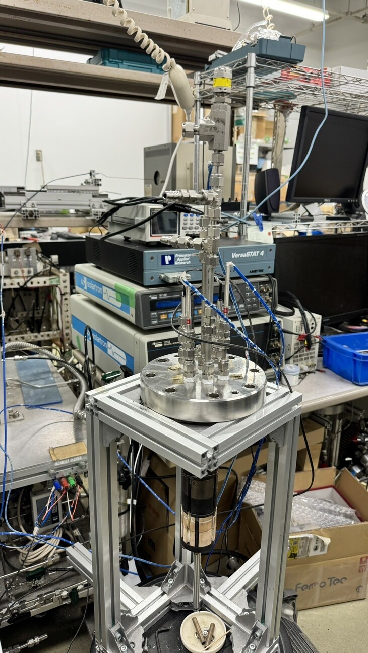 | 説明 | 発電環境(温度・圧力・流量)を実験パラメータとし,コイン型固体酸化物形燃料電池(SOFC)の発電性能を評価するための実験装置。発電環境温度800℃,圧力5 MPaまでの発電試験が行える。 |