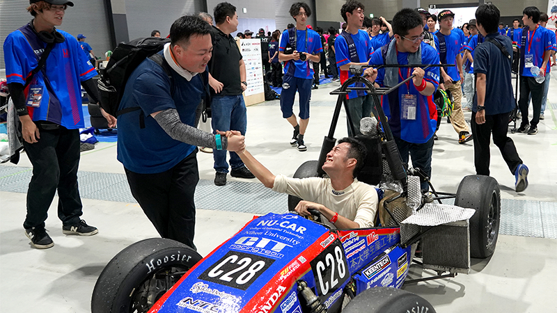 本学部公認学生サークル“フォーミュラJSAE”は、小型レーシングカーを開発・製作し、公益社団法人自動車技術会が主催する“学生フォーミュラ日本大会”に2003年開催第1回大会から出場しています(チーム名:CIT – Racing Team)。NU-CARは、グループものづくり推進の観点から本チームを支援しています。